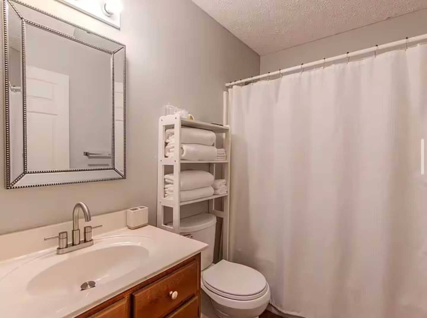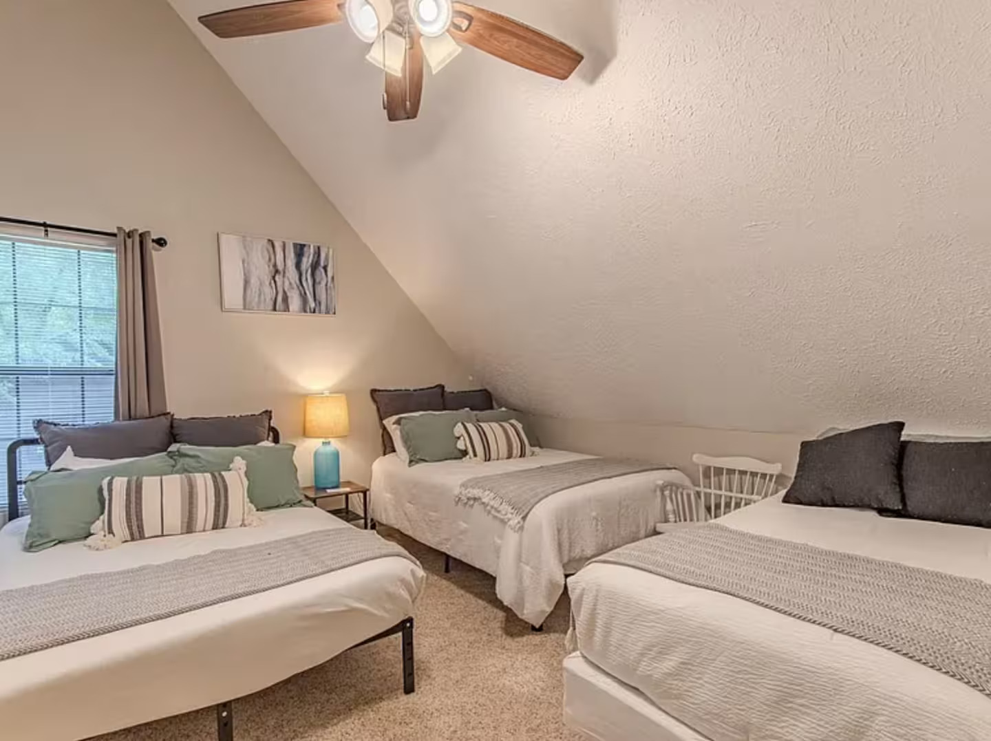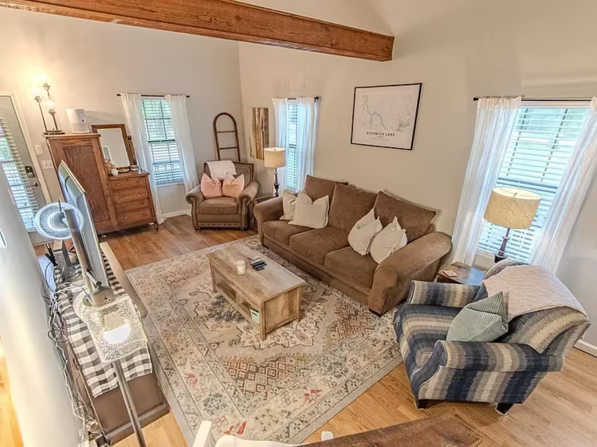 Sleeps up to 9 guests, 5 beds & features 2 bedrooms, 2 full baths, full kitchen, laundry, and large decks with a fire pit + games. Boat & pet friendly. WiFi, smart TVs, and all essentials provided. Perfect for families, pets, lake lovers, or contractors, relax, recharge, and enjoy lake life!